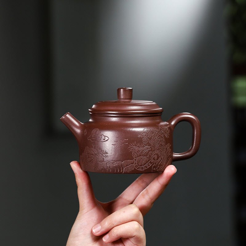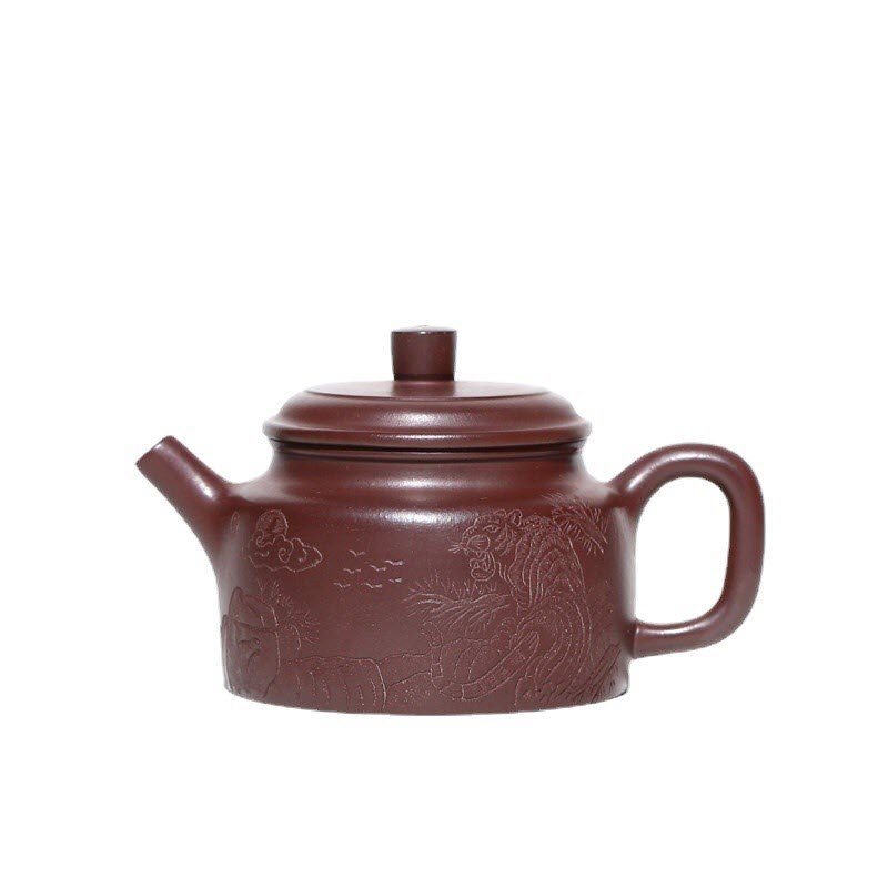 Sự uy nghiêm của rừng già còn được thể hiện qua hình vẽ ông Hổ uy phong đang gầm lên thầm khẳng định rằng đây nơi đây chỉ có ta là chúa tể. Ấm Trà Tử Sa Tử Nê Dáng Đức Trung DT007 đã lột tả được vẻ huyền bí của rừng già, sự uy nghiêm của chúa tể Sơn Lâm, mang đến một bức tranh sinh động.