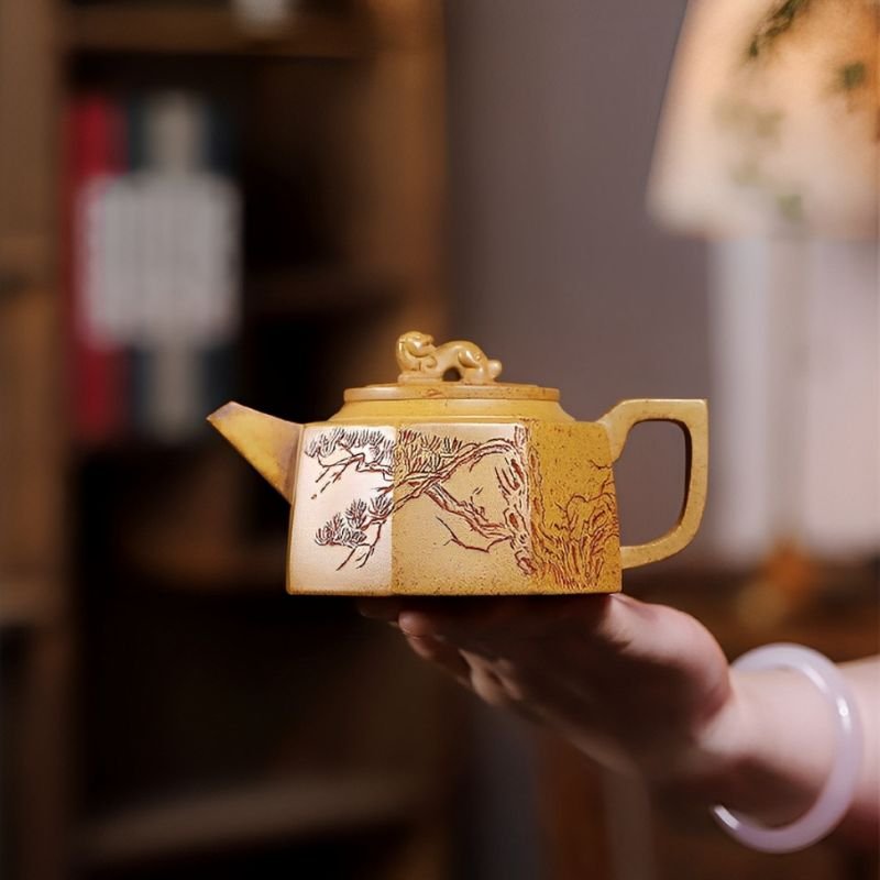 Dáng ấm Bát Phương là biểu tượng của sự cân đối và hài hòa trong thiết kế. Với hình dáng bát giác độc đáo, chiếc ấm không chỉ thể hiện sự tinh xảo trong chế tác mà còn mang ý nghĩa phong thủy sâu sắc. Các đường nét sắc sảo và tỷ lệ hoàn hảo giữa các mặt tạo nên vẻ đẹp mạnh mẽ, vừa cổ điển vừa hiện đại.