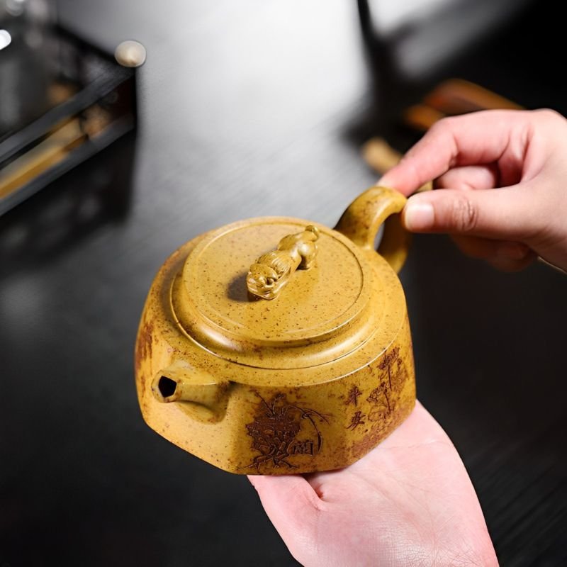 Chiếc ấm này được chế tác thủ công, từng góc cạnh đều được chăm chút kỹ lưỡng để đảm bảo sự hoàn hảo về mặt thẩm mỹ và công năng. Quai cầm chắc chắn, vòi rót chính xác và nắp khít chặt là những yếu tố giúp chiếc ấm trở thành lựa chọn hàng đầu của những người yêu trà.