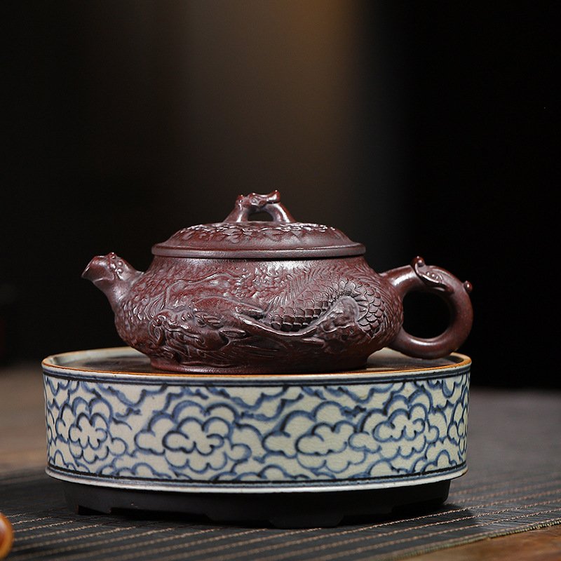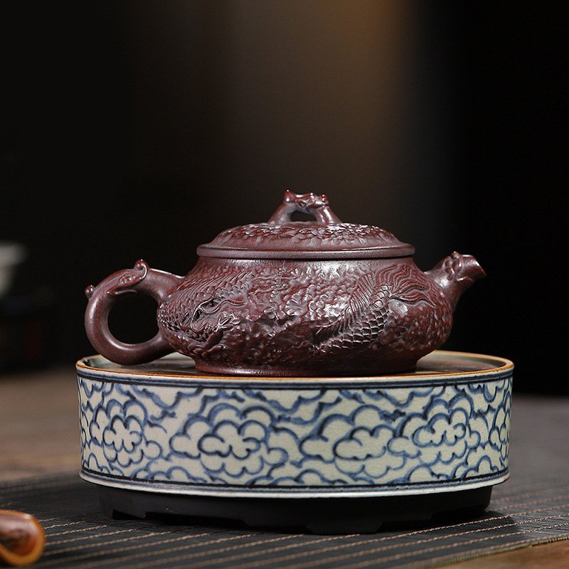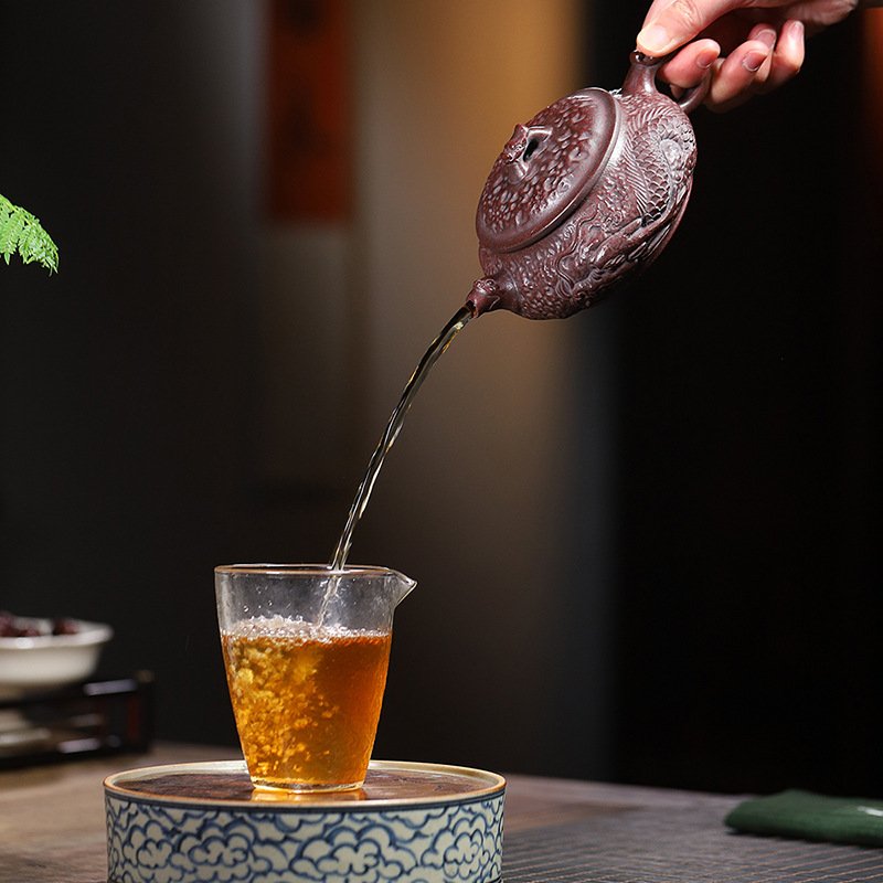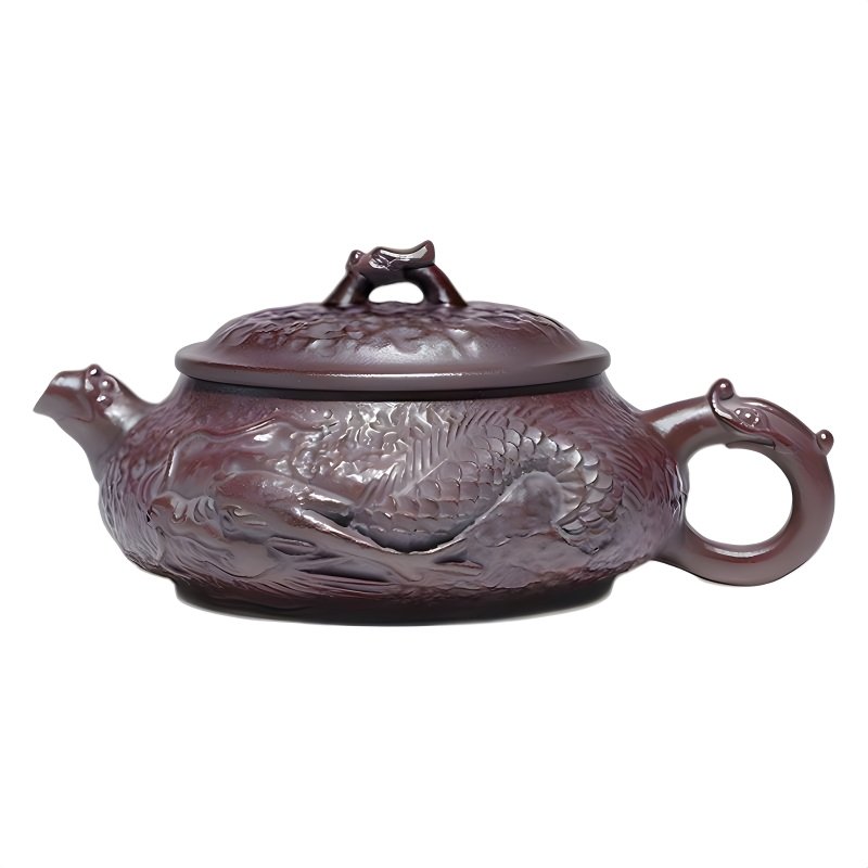 Họa tiết rồng nổi trên thân ấm là điểm nhấn đặc biệt. Rồng là biểu tượng của sự uy quyền và may mắn trong phong thủy. Sở hữu ấm tử sa có họa tiết rồng không chỉ nâng tầm thưởng trà mà còn mang lại sự thịnh vượng và tài lộc cho không gian của bạn.