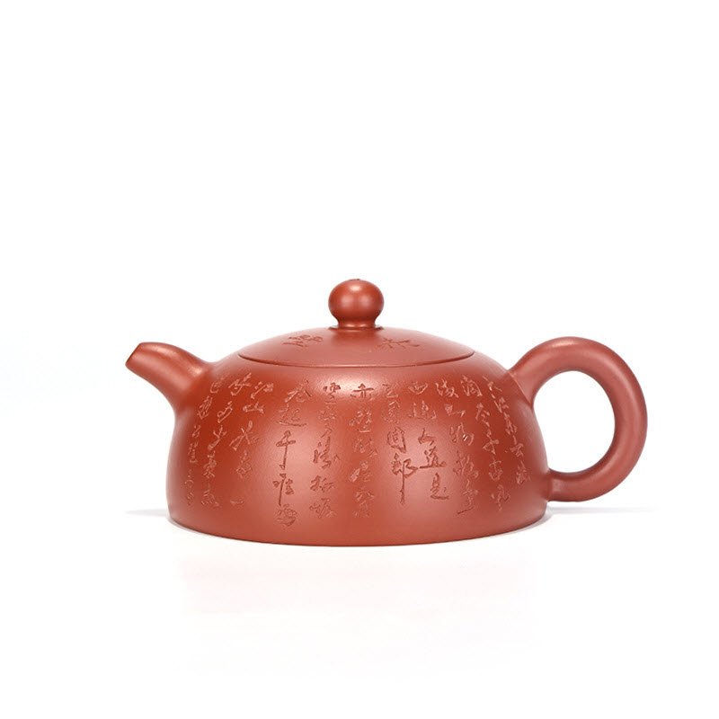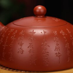 Với những dòng chữ được khắc chìm sâu rất rõ ràng phía thân của chiếc ấm. Với chuẩn dáng ấm Bán Nguyệt tròn trịa, được thiết kế liền khối tạo sự liên tục cho chiếc ấm. Những chữ được khắc trên thân ấm, như những lời nhắn nhủ với của Cổ nhân đến người sở hữu chiếc ấm.