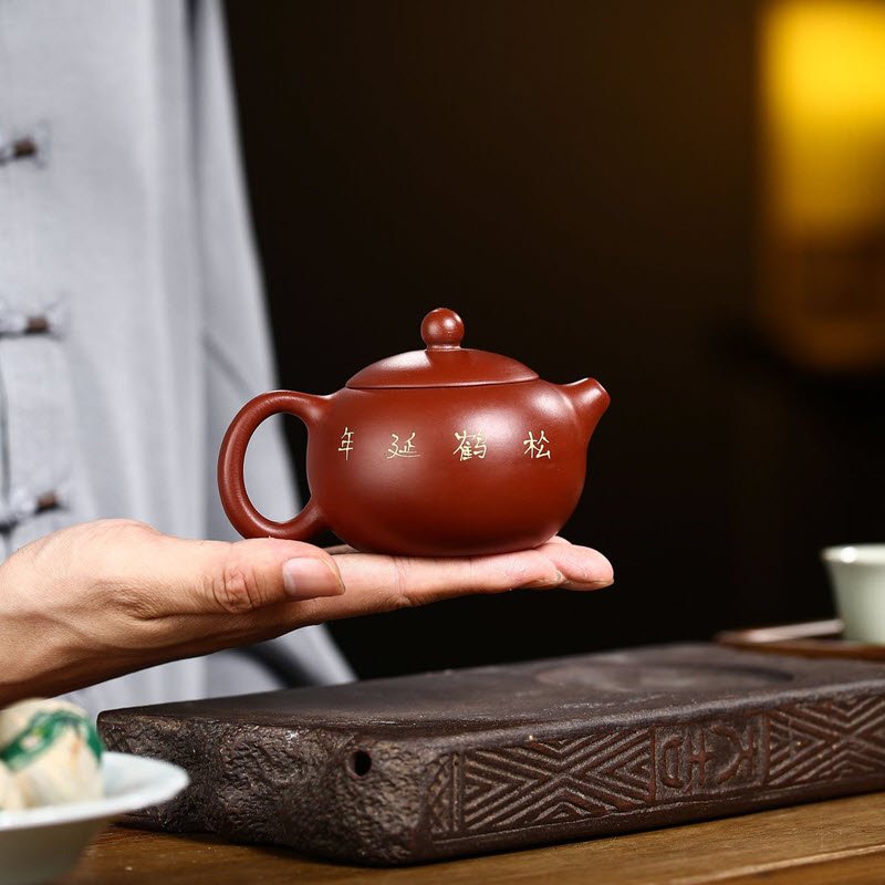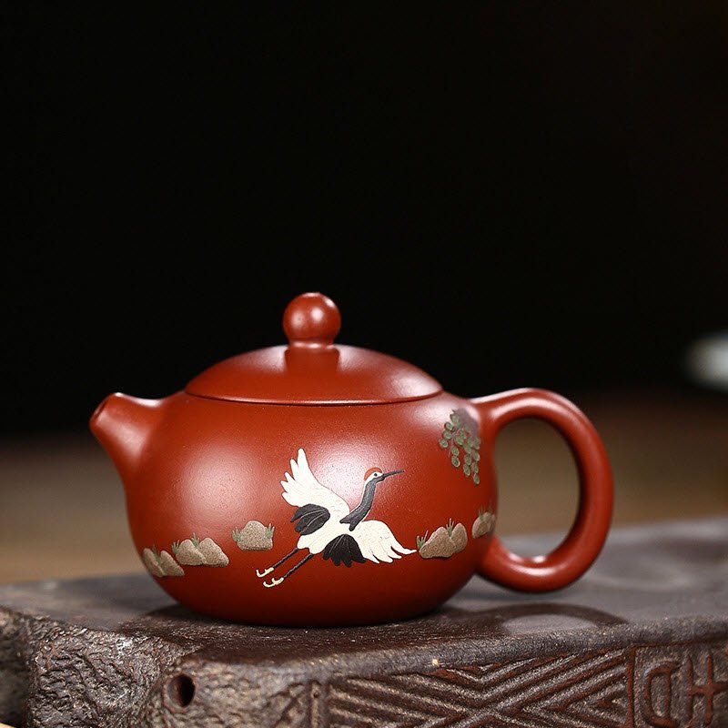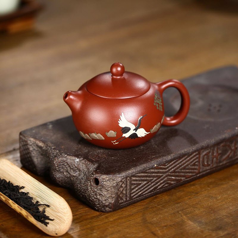 Ấm tử sa Đại Hồng Bào họa tiết chim Hạc dáng ấm Tây Thi TT015