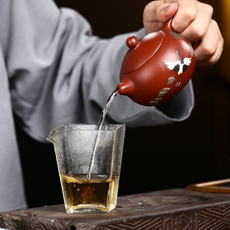 Họa tiết chim Hạc không chỉ là điểm nhấn nghệ thuật, mà còn mang theo ý nghĩa tốt lành, gợi nhắc đến sự thanh khiết và trường tồn. Trong văn hóa Trung Hoa, chim Hạc thường xuất hiện cùng với các bậc hiền nhân, biểu trưng cho đức hạnh và cuộc sống lâu bền. Khi được khắc lên ấm trà, họa tiết này còn mang theo thông điệp về sự tĩnh tại, an lành trong từng buổi thưởng trà.