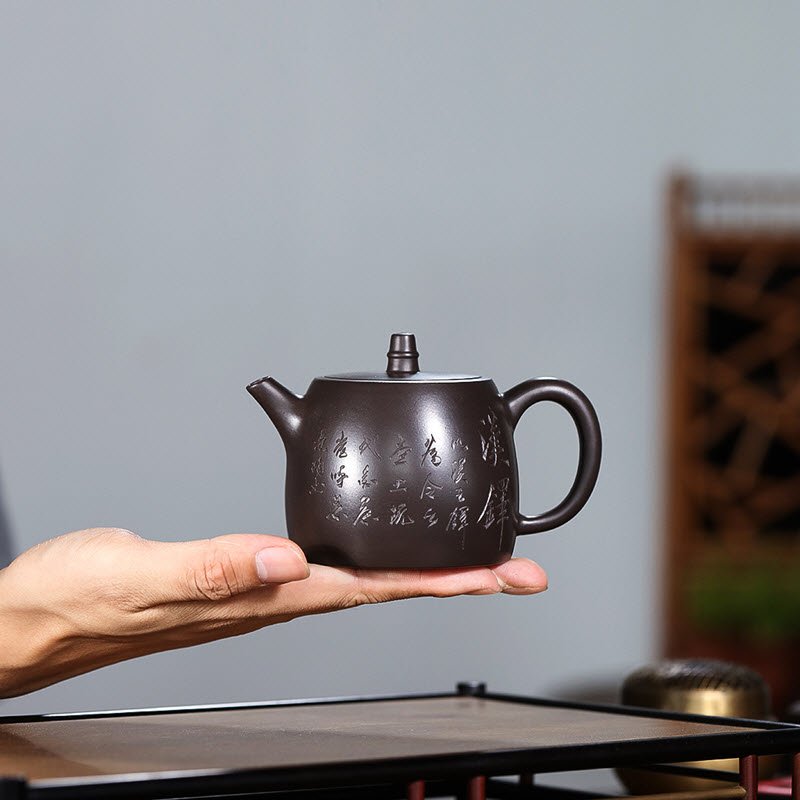 Với màu sắc độc đáo màu đen huyền quý và sang trọng, mẫu ấm tử sa hắc nê dàng Hán Đạc là mẫu ấm được rất nhiều người yêu thích trên của chiếc ấm được trạm khắc dòng cữ phía trên càng tăng thêm tính nghệ thuật cho chiếc ấm.