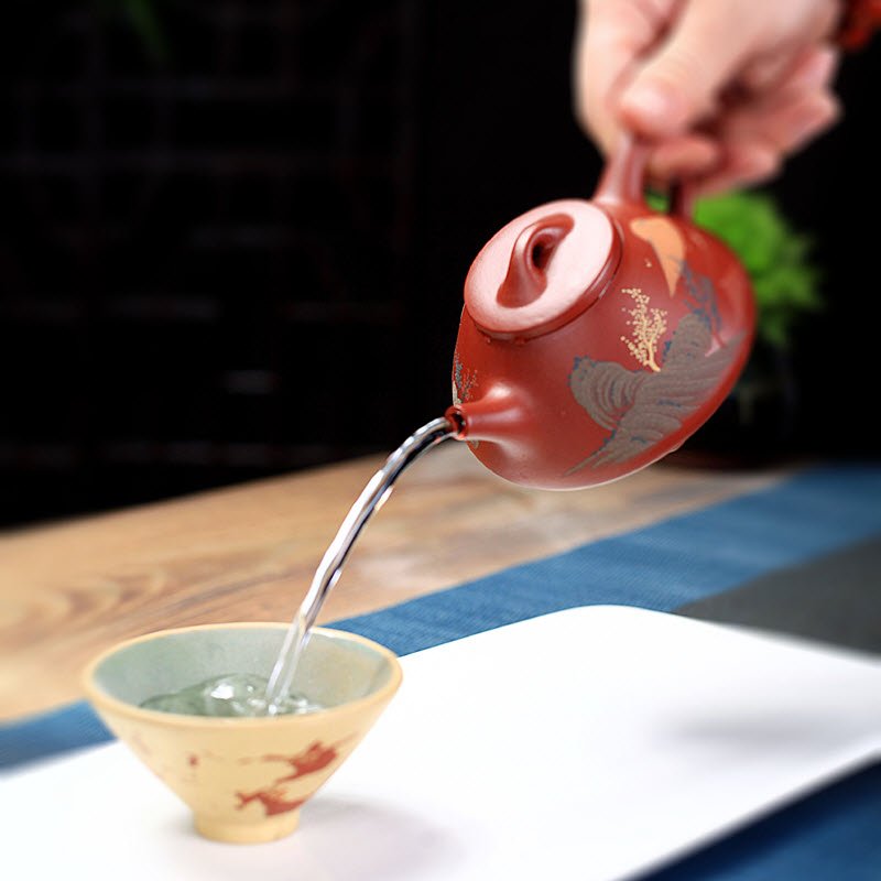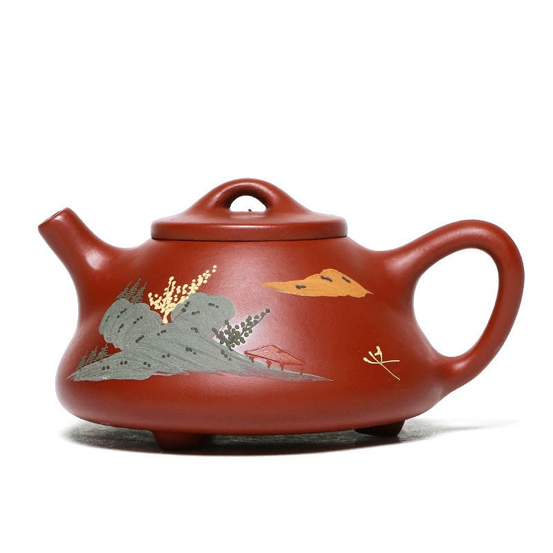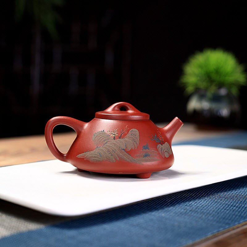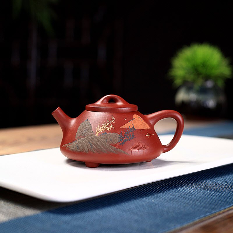 Ấm tử sa nguyên khoáng tử nê dáng Thạch Biều bức tranh bến đò