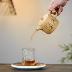 Chất Liệu Độc Đáo – Hoàng Kim Đoạn Nê – Hoàng Kim Đoạn Nê là một trong những loại đất quý nhất dùng để chế tác ấm tử sa. Đất đoạn nê có kết cấu đặc biệt, khả năng giữ nhiệt và hấp thụ hương vị trà tuyệt vời, làm nổi bật sự tinh tế trong từng chén trà. Chất liệu này cũng giúp ấm có màu sắc ấm áp, tự nhiên, tạo cảm giác sang trọng và gần gũi. – Nhờ vào đặc tính thẩm thấu vi mô, loại đất này còn hỗ trợ tối ưu trong việc làm dịu và lưu giữ hương vị trà, đặc biệt phù hợp với các loại trà ô long, trà đen hoặc lục trà cao cấp.
