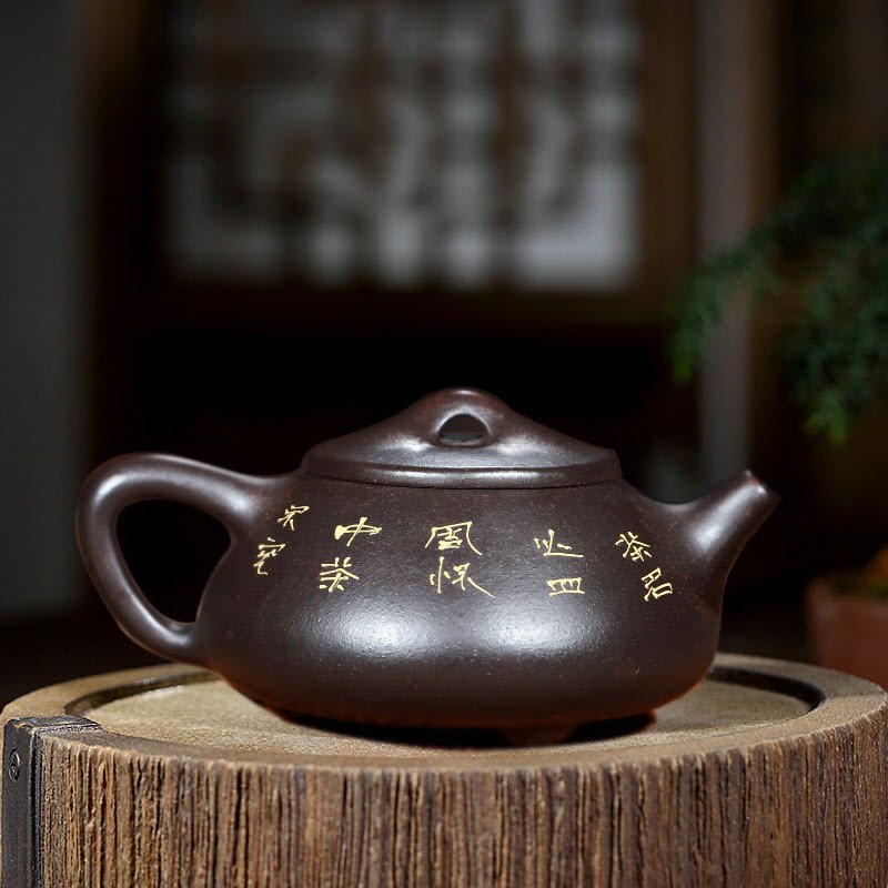 Phần đáy của chiếc ấm được thiết kế có ba phần nhô lên tách biệt ấm với mặt phẳng để ấm, phía thân sau được viết chữ vàng lên trên thân ấm, ánh sáng chiếu vào càng làm tăng thêm vẻ đẹp cho chiếc ấm. Vòi ấm có dòng chảy nước mạnh, có khả năng ngắt nước tốt. Với dung tích 250ml, ấm tử sa này phù hợp cho một lần pha trà cho một nhóm nhỏ bạn bè hoặc gia đình. Lưới lọc 108 lỗ hoa mai giữ trà và loại bỏ bất kỳ tạp chất nào, giúp bạn tận hưởng hương vị tinh tế của trà một cách tốt nhất.