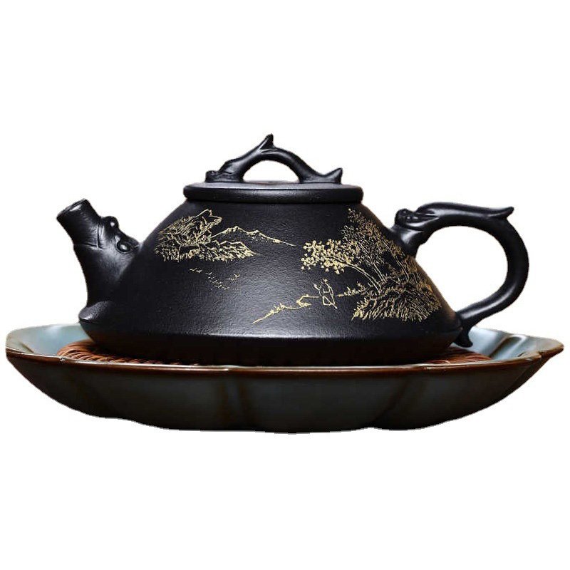 Ấm Thạch Biều TB017 có thiết kế độc đáo với hình dáng cân đối, tạo cảm giác thanh lịch và tao nhã. Quai cầm và vòi ấm được thiết kế chuẩn xác, giúp dòng trà chảy mượt mà, không bị gián đoạn. Họa tiết cảnh vật thiên nhiên khắc vàng trên thân ấm không chỉ tăng giá trị thẩm mỹ mà còn thể hiện sự tinh tế trong từng chi tiết.