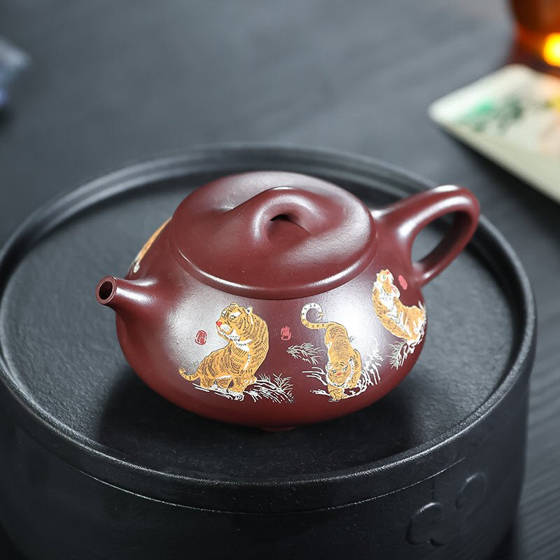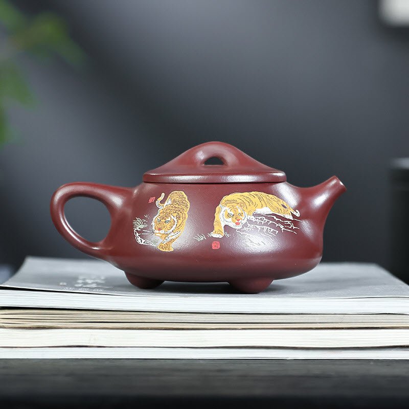 Ấm tử Thạch Biều tử nê nguyên khoáng TB008 phần thân bức tranh hổ