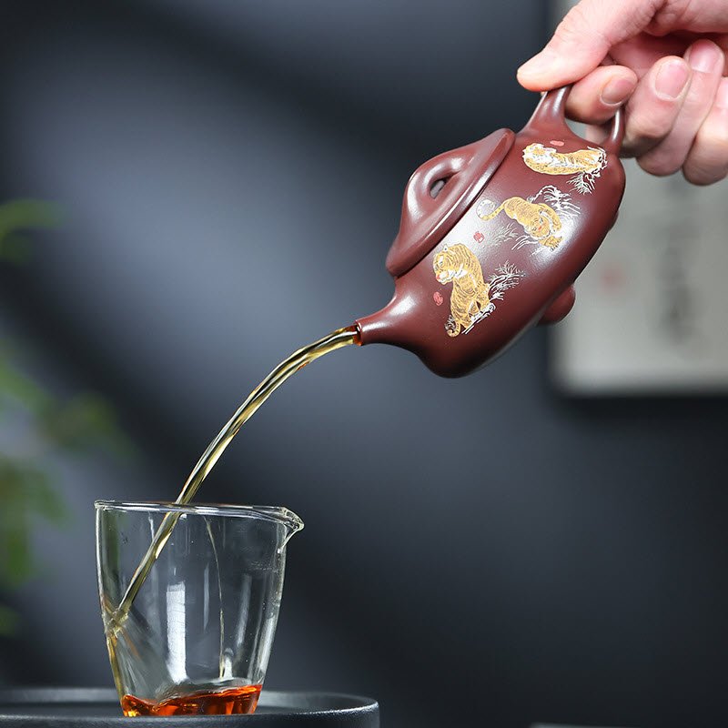 Lưới lọc hoa mai với 14 lỗ được thiết kế để lọc trà một cách hiệu quả, giữ cho nước trà trong sạch và ngọt ngào. Họa tiết tam hổ quy lâm được khắc tinh xảo trên bề mặt ấm, tạo điểm nhấn nghệ thuật và linh hoạt cho sản phẩm.