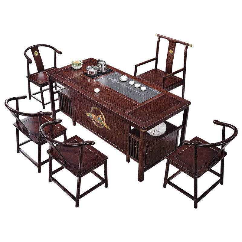 Bộ bàn trà đi kèm với bếp tự động, giúp bạn dễ dàng chuẩn bị nước nóng cho việc pha trà mà không cần mất nhiều thời gian. Ghế chủ và ghế khách được thiết kế thoải mái, tạo cảm giác dễ chịu cho người ngồi, thích hợp cho những buổi trò chuyện và thưởng trà kéo dài.